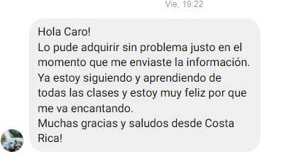 Una vez hagas el pago, te llevará a una página de gracias por tu compra y en esa página te dejaré el link para accesar al área de miembros. También te enviaré inmediatamente un correo con los datos de tu compra y de como acceder al curso en línea.