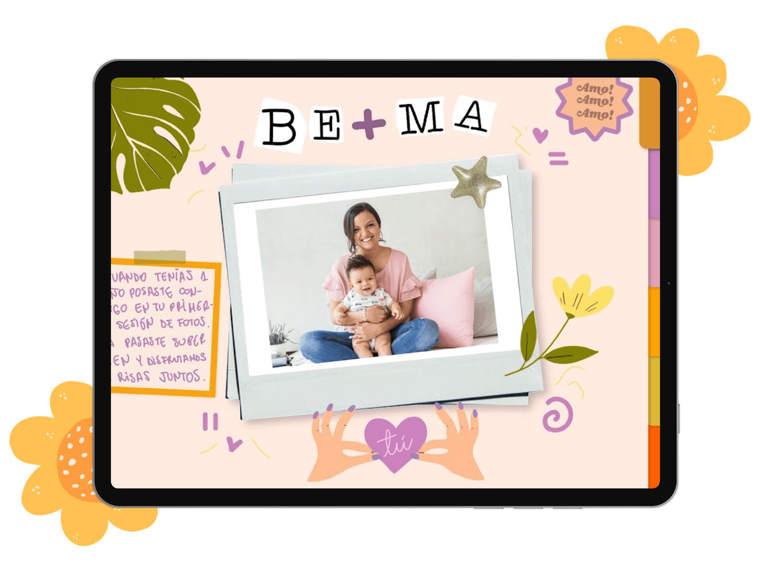 Este hermoso albúm te ayudará a vaciar tu galería de fotos desordenada y llena y te permitirá transformar esas fotos en memorias inborrables digitales. Este albúm lo puedes llenar en Canva o Goodnotes.