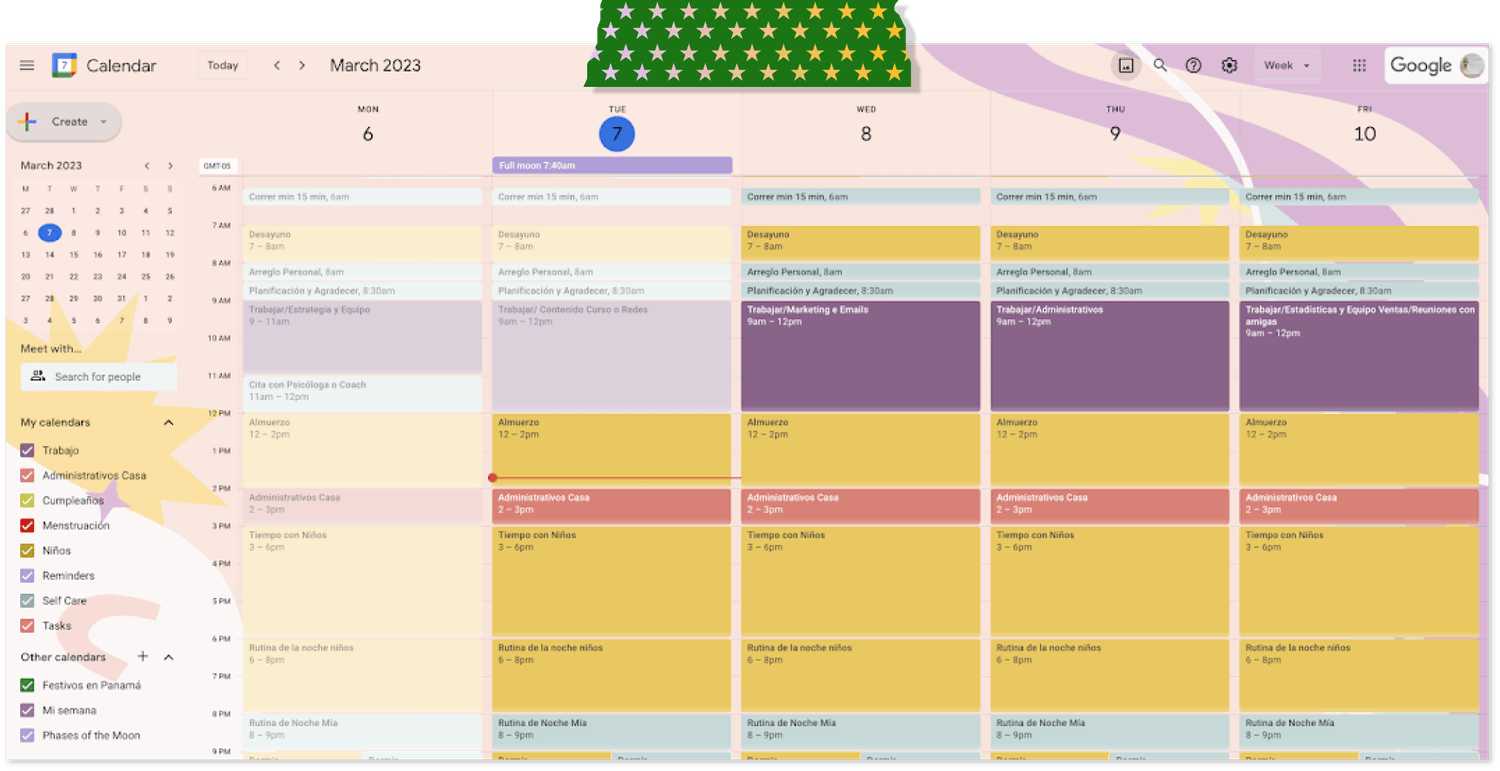 1. Divide tu día en bloques de días para tener un enfoque láser (personalízalo, crea calendarios alternos y eventos) con Google Calendar