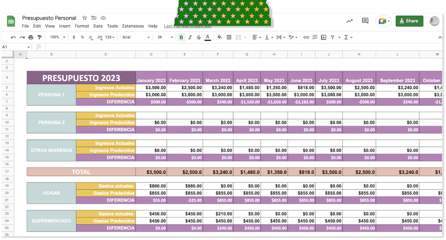 5. Haz por fin un presupuesto COMPLETO y que puedas compartir con las personas más importantes con Google sheets