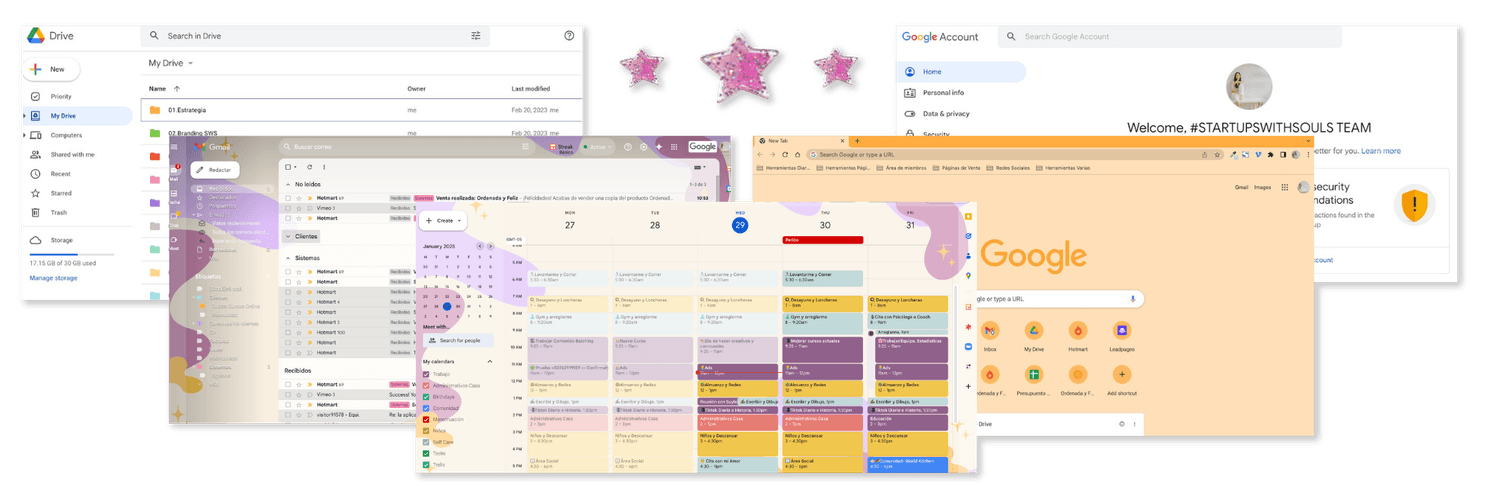 LA VERSIÓN PLUS DEL CURSO: Incluye todo lo que es Ordenada y Feliz básico + módulos explicativos de como organizar tu negocio con Google Workspace. De Google explica los siguientes módulos: gestión de calendario en google calendar, orden digital en Google drive, gestión y orden de tu correo, creación de tu escritorio virtual, presupuesto con google sheets.