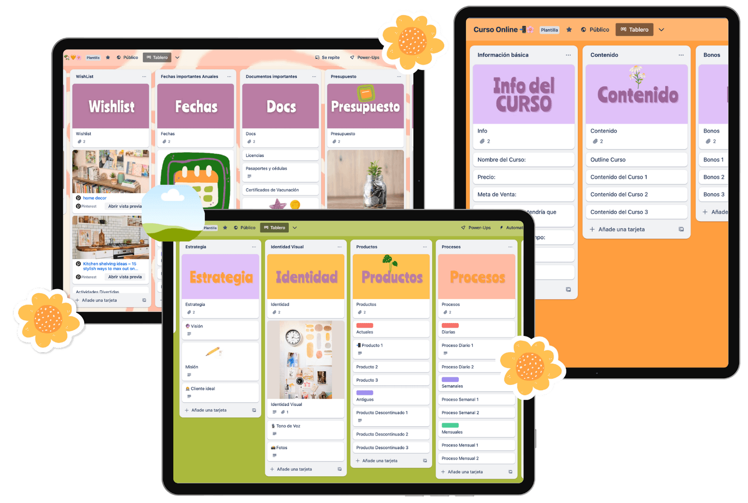Ordenada y Feliz es un curso en línea, donde con 9 tableros de Trello tipo plantilla, sentirás que la información de tu vida está centralizada en un solo lugar con un sistema rápido de responde y llena.