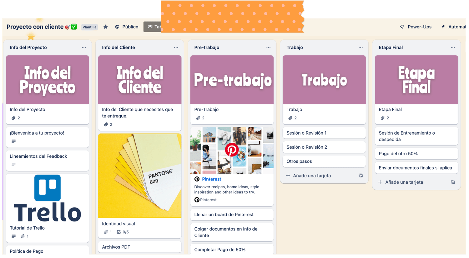 Plantilla de Trello "Portal Cliente" para organizar tus procesos 1:1 con clientes $15 dólares