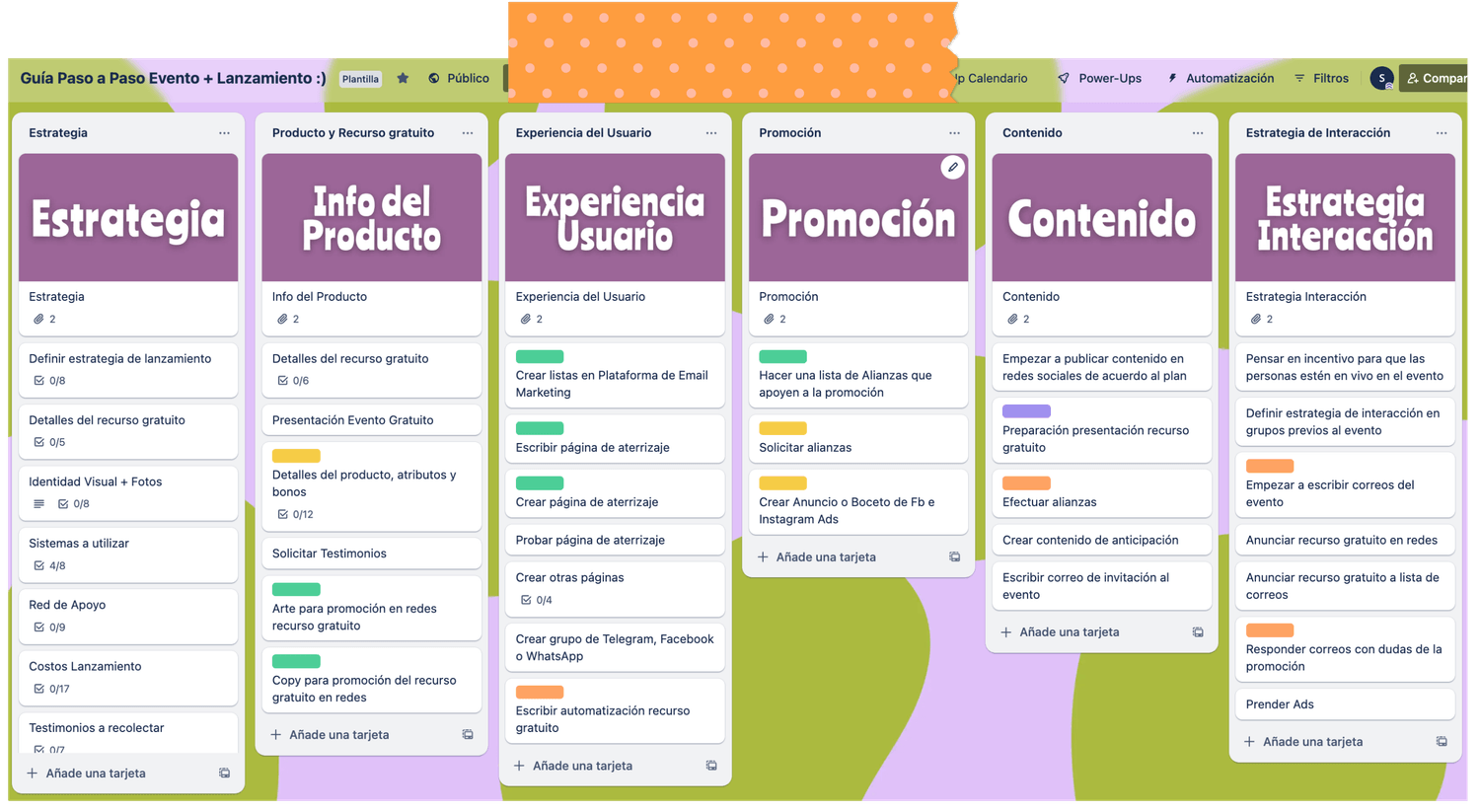 Plantilla de Trello "Lanzamiento" para planificar tu próximo lanzamiento tipo webinar $15 dólares