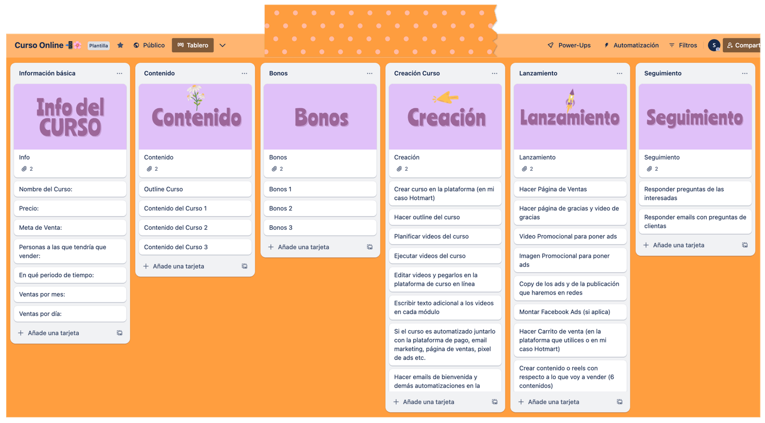 Plantilla de Trello "Curso Online" para planificar tu próximo curso online $15 dólares