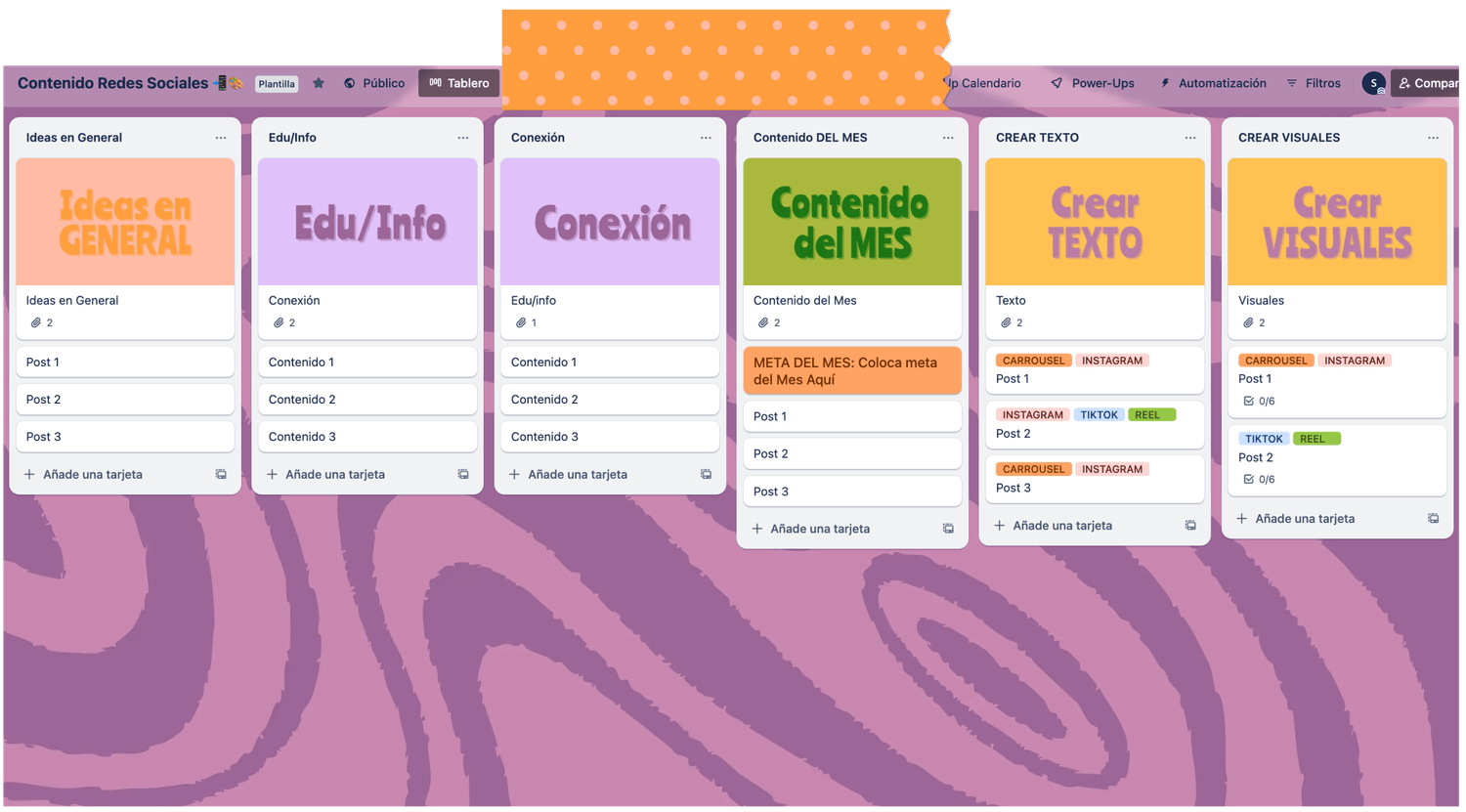 Este tablero te ayudará a planificar el contenido de tus redes sociales en formato Calendario.
