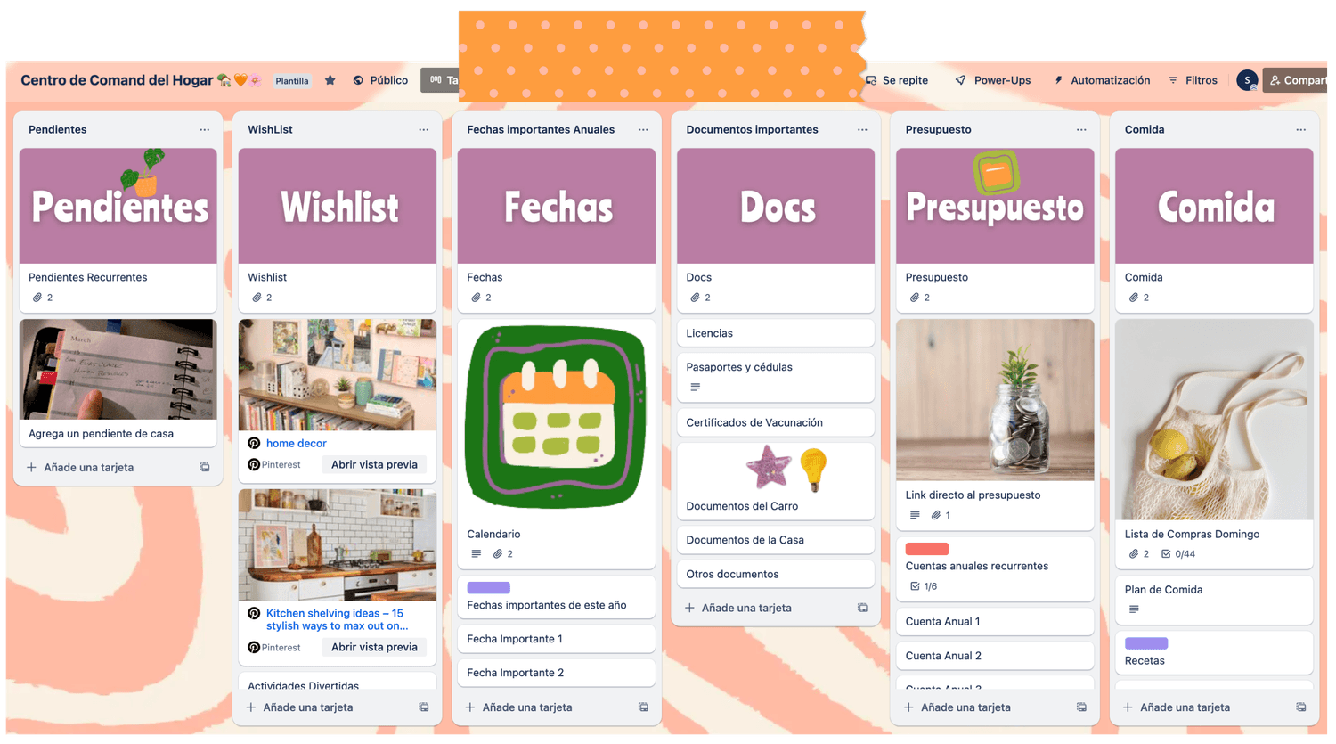 Plantilla de Trello "Centro de Comando del Hogar" para organizar tu casa $15 dólares