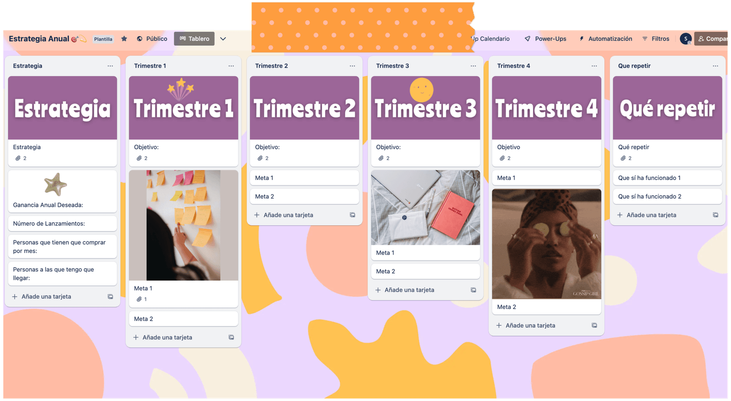 En este tablero podrás planificar la estrategia anual de tu negocio y ordenar cada uno de los proyectos o lanzamientos que tengas.