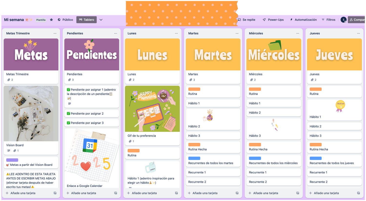 Plantilla de Trello "Mi semana" para organizar tu semana $15dólares