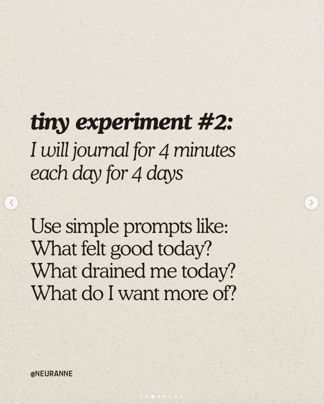 Anne Laure propone hacer experimentos pequeños por una duración determinada. Por ejemplo, hacer journaling de 5 líneas por los próximos 5 días.