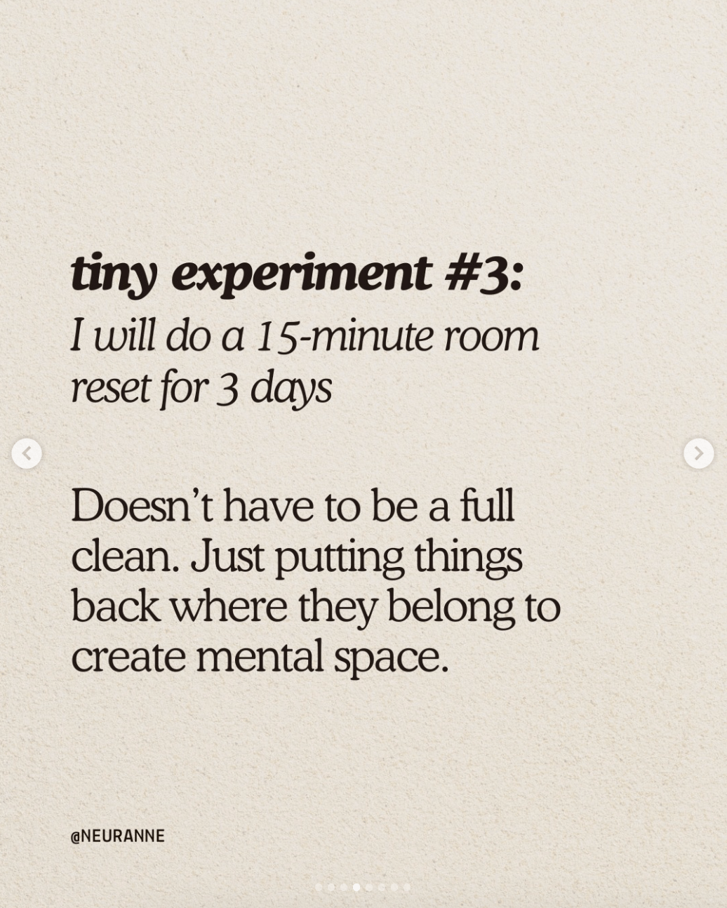 Experimento 3: Haré un reset de mi cuarto de 15 min los siguientes 3 días